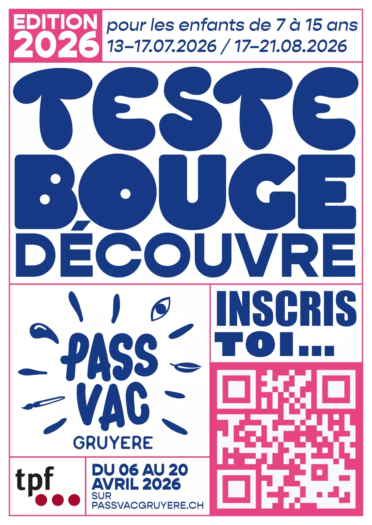 Deux semaines seront proposées, soit du 13 au 17 juillet et du 17 au 21 août 2026 afin de permettre aux gruériens (7 à 15 ans) de participer à des activités diverses et variées (sport, nature, traditions, créativité, métiers). Les inscriptions se dérouleront en avril (date précise tout prochainement).