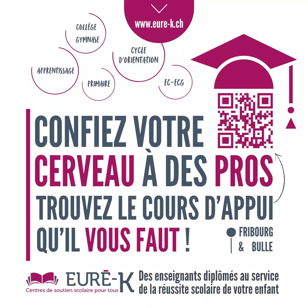 Présents à Bulle et à Fribourg depuis 2011, les centres de soutien scolaire Eurê-K favorisent la réussite scolaire des élèves de 6 à 19 ans grâce à des cours d’appui personnalisés, dispensés par des enseignants diplômés.