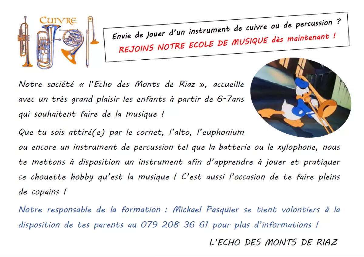 Cours à l'instrument (Cuivre et percussions, instrumentation brass band)