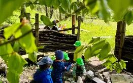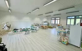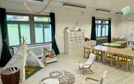 Avec une capacité de 26 places, la crèche conserve une ambiance familiale et conviviale. Les locaux lumineux, adaptés aux besoins de la petite enfance, sont complétés par des espaces extérieurs où les enfants peuvent jouer et explorer. La proximité des forêts et des prairies permet d’organiser quotidiennement des activités en plein air, favorisant le lien avec la nature et la découverte du monde vivant.