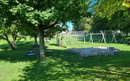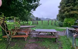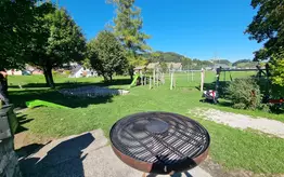 Place de pique-nique avec un grill, tables et bancs à disposition.